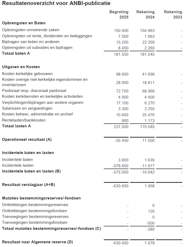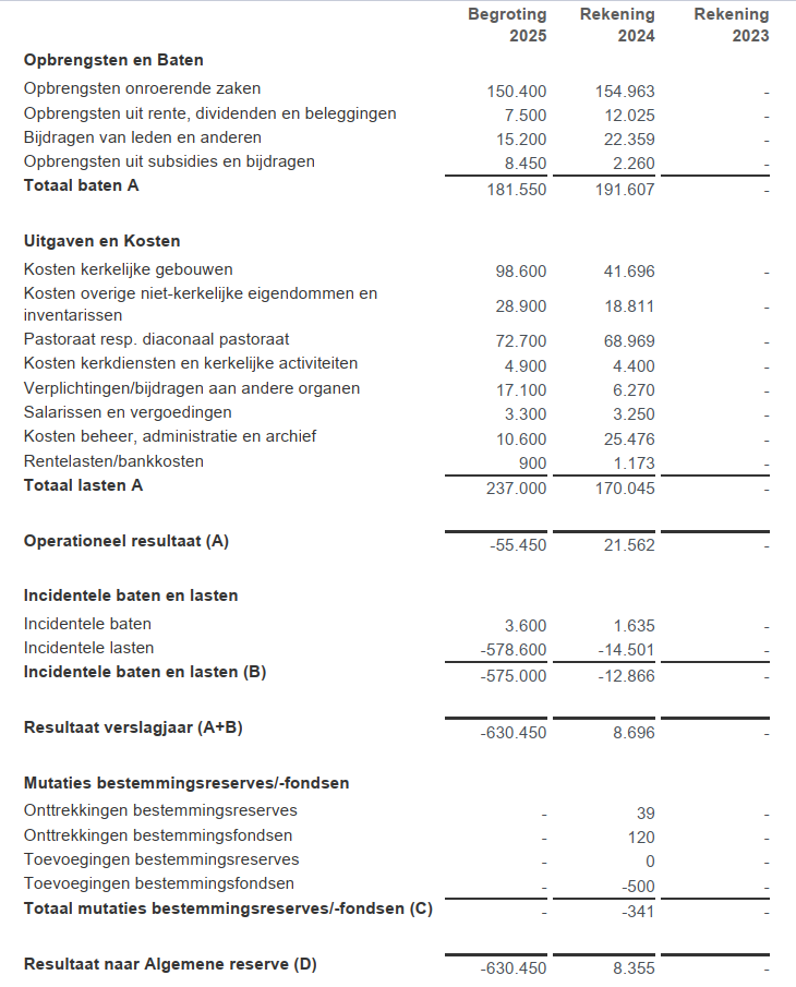 Op dit moment is er alleen een gezamenlijke begroting beschikbaar voor het College van Kerkrentmeesters, het verkort overzicht hiervan staat hieronder. De eerste gezamenlijke jaarrekening zal in de loop van dit jaar hier ook worden getoond.